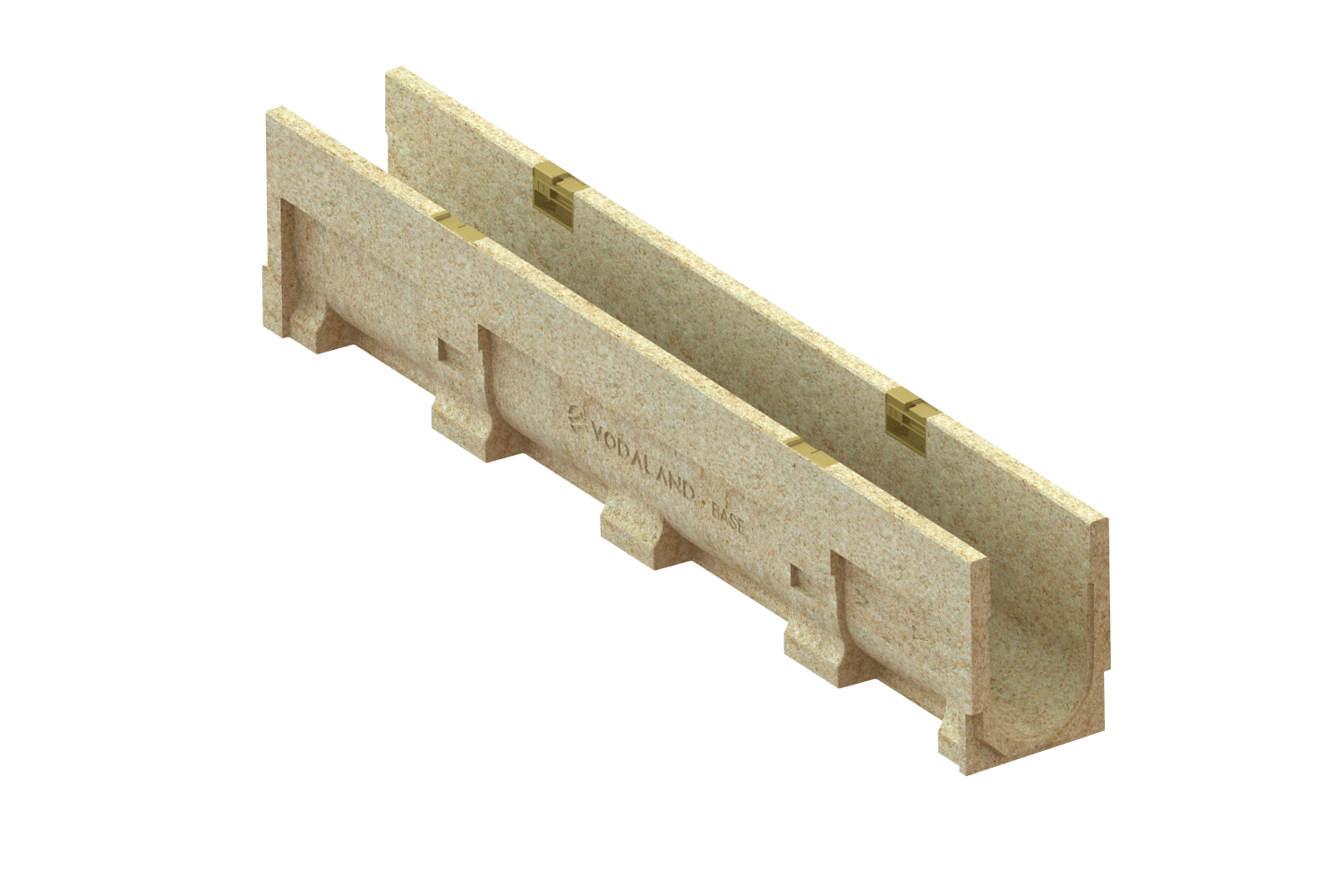 For piping, Vodaland designs our channels with outlet options on the bottom, sides, and ends. These outlets can be attached to 4” Schedule 40 PVC with an adapter we sell separately. If other piping is to be used, we recommend connecting them to the outlets via rubber couplings which are sold externally.