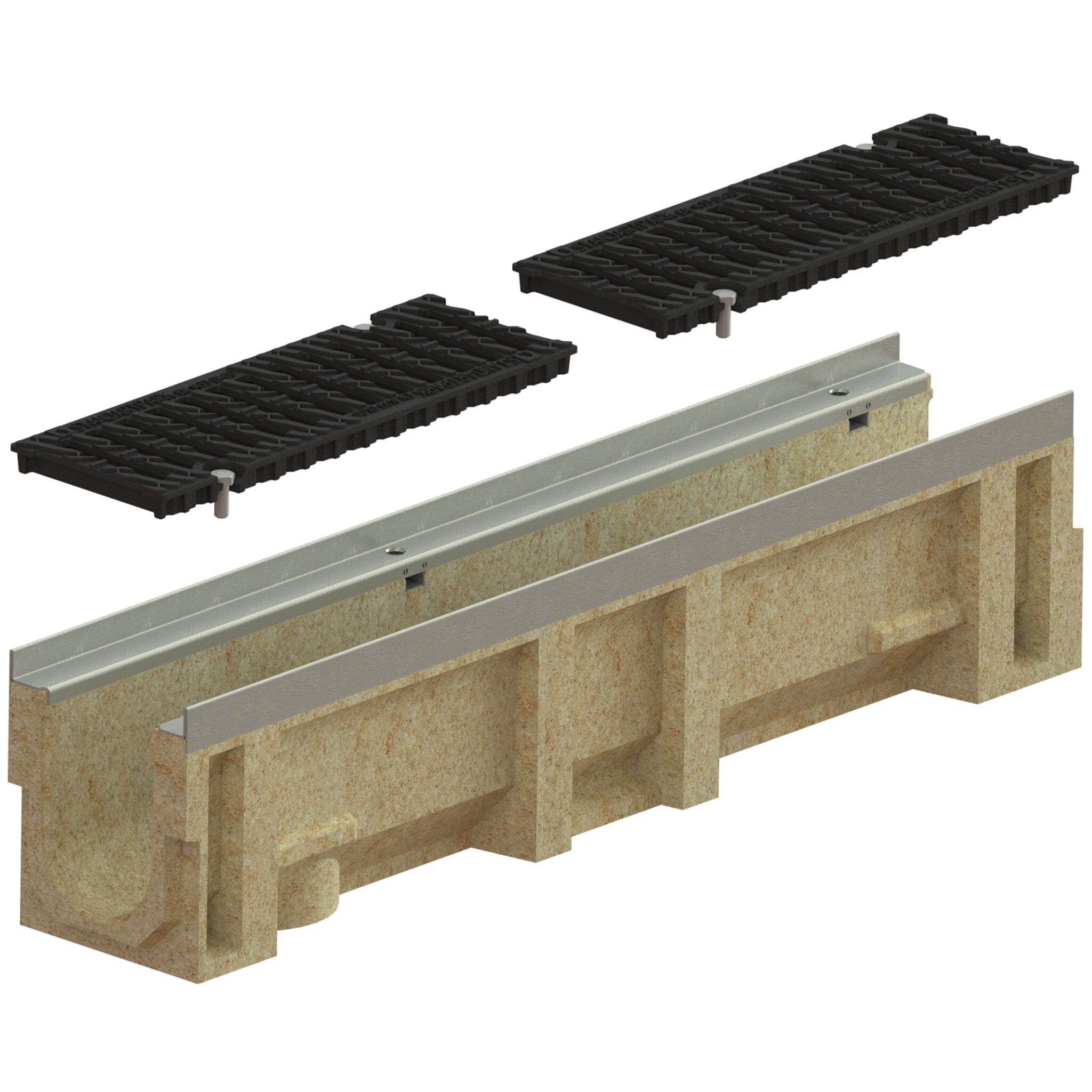 All Vodaland warehouse trench drains are 1-meter (3.28ft) lengths. Trench drains can be connected together for longer runs, and units can be cut to match specific sizing requirements.