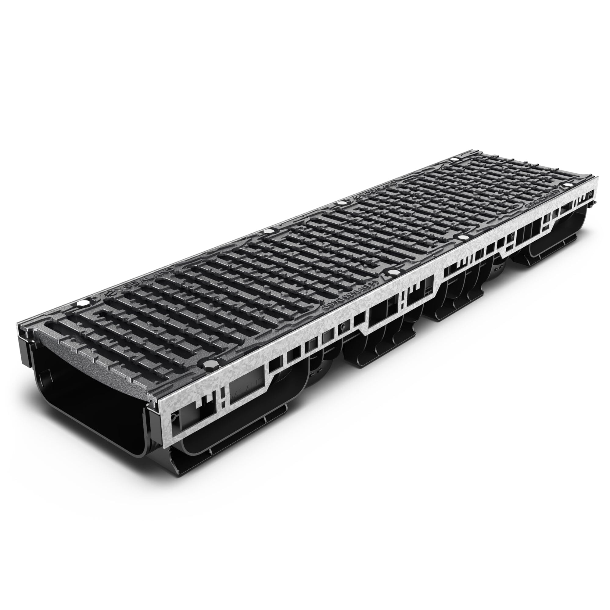 Vodaland’s 8” Pro plastic trench drain has an 8” internal width (10-1/4” external), and a 3.28ft (1 meter) length. This trench drain comes in 3 external depth options of 4.53", 8.47”, and 12.4". This trench drain comes with a D-class ductile cast iron grate. The D load class is designed to withstand heavy-duty traffic including tractor-trailers, forklifts, machinery, etc. The plastic channels connect easily to one another to form the customer’s desired length of run. Each channel features a 90-degree connection option so that the system can turn at corners. 1 channel, 2 grates, and 8 fastening bolts are included in each unit purchased. Common applications: warehouses, loading docks, roadways, industrial plants, heavy-duty garages and maintenance shops.